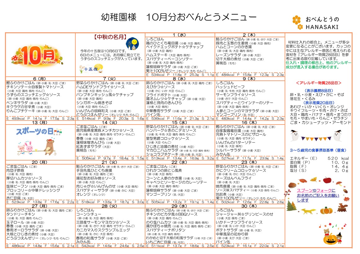 10月幼稚園メニュー(クリックするとPDFファイルで開きます)