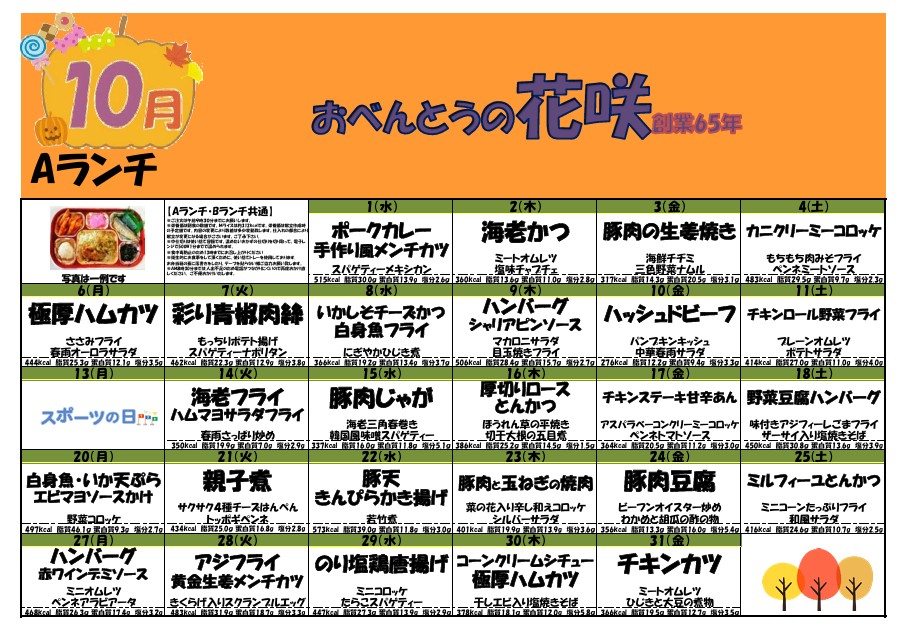 10月Aランチ(クリックするとPDFファイルで開きます)