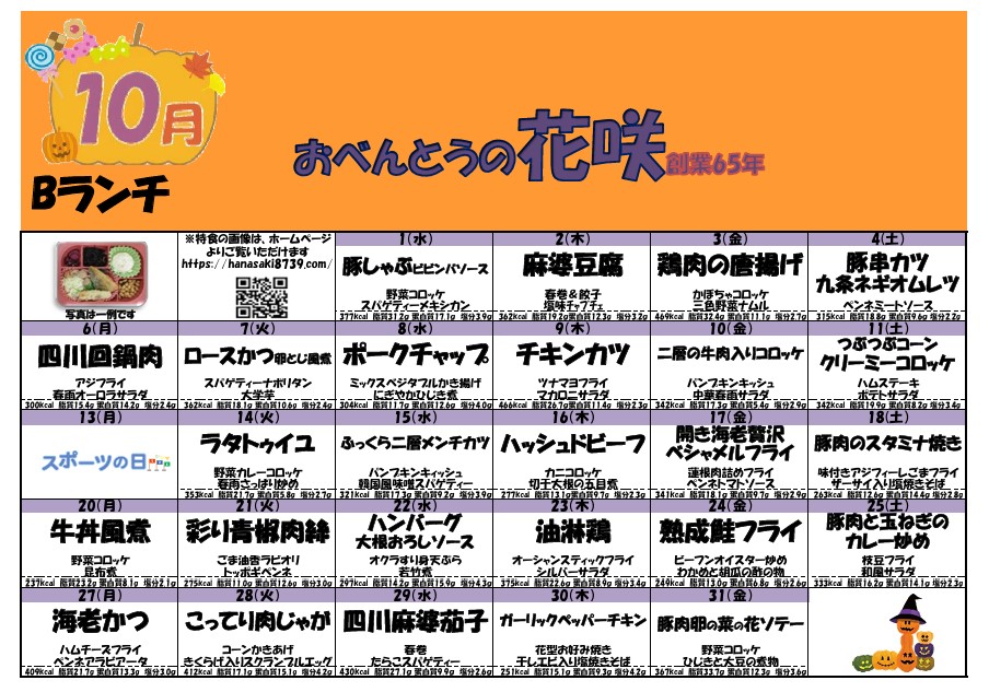 10月Bランチ(クリックするとPDFファイルでひらきます)