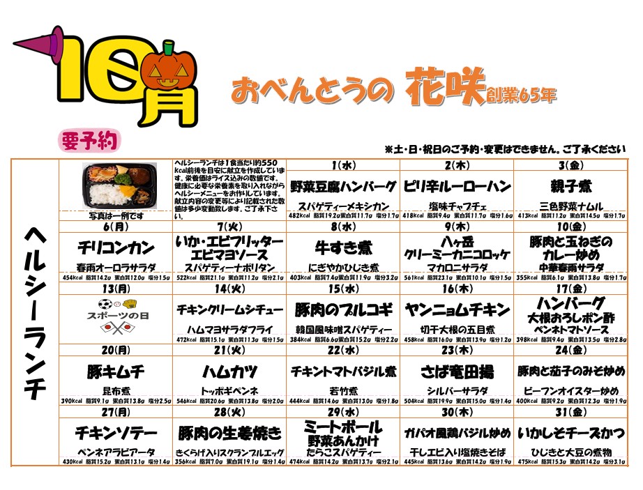 10月ヘルシーランチ(クリックするとPDFファイルで開きます)